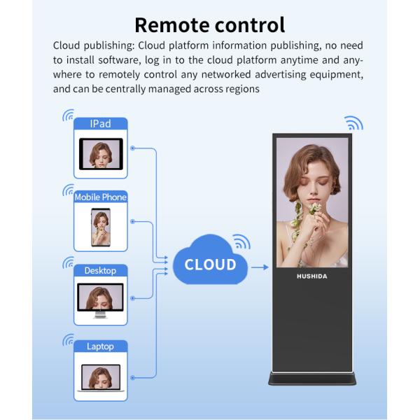 The cloud intelligent advertising machine can support multiple split screen formats such as 1 split screen, 2 split screen, 3 split screen, etc., and can play picture and video at the same time; Android network version and Android touch version can support 26 kinds of split screen formats, and the split screen area can be self-tuning